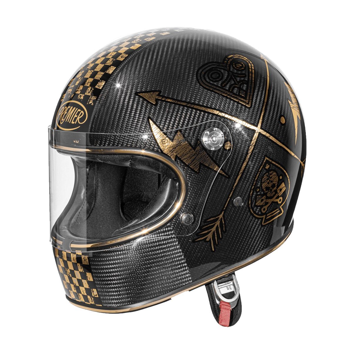 Trophy Carbon HelmetExternal shell construction is moulded with a DCA multi-axial structure composed of carbon and aramid fibres blended with an epoxy resin. Inner shell construction has differentiated density EPS for better absorption of the energy generated by an impact. Combination of inner and external shell construction results in lightweight, durable and comfortable helmet. Anti-scratch treated visor attaches to shell with mechanism that regulates its movement. Internal linings created in Sanitized-treated, antiallergenic fabric with a synthetic leather finish. The strap has a double ring fastener.