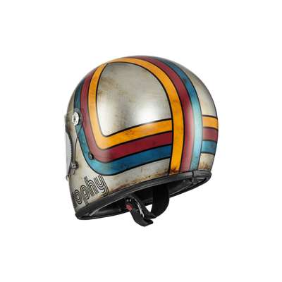 Trophy Platinum Edition HelmetExternal shell construction is moulded with a DCA multi-axial structure composed of carbon, dyneema and aramid fibres blended with an epoxy resin. Inner shell construction has differentiated density EPS for better absorption of the energy generated by an impact. Combination of inner and external shell construction results in lightweight, durable and comfortable helmet. Anti-scratch treated visor attaches to shell with mechanism that regulates its movement. Internal linings created in Sanitized-treated, antiallergenic fabric with a synthetic leather finish. The strap has a double ring fastener. Platinum Edition comes with coloured seams matching the graphic designs, leather elements and special branded on fire Premier logos.