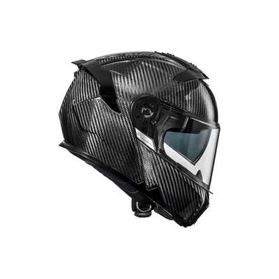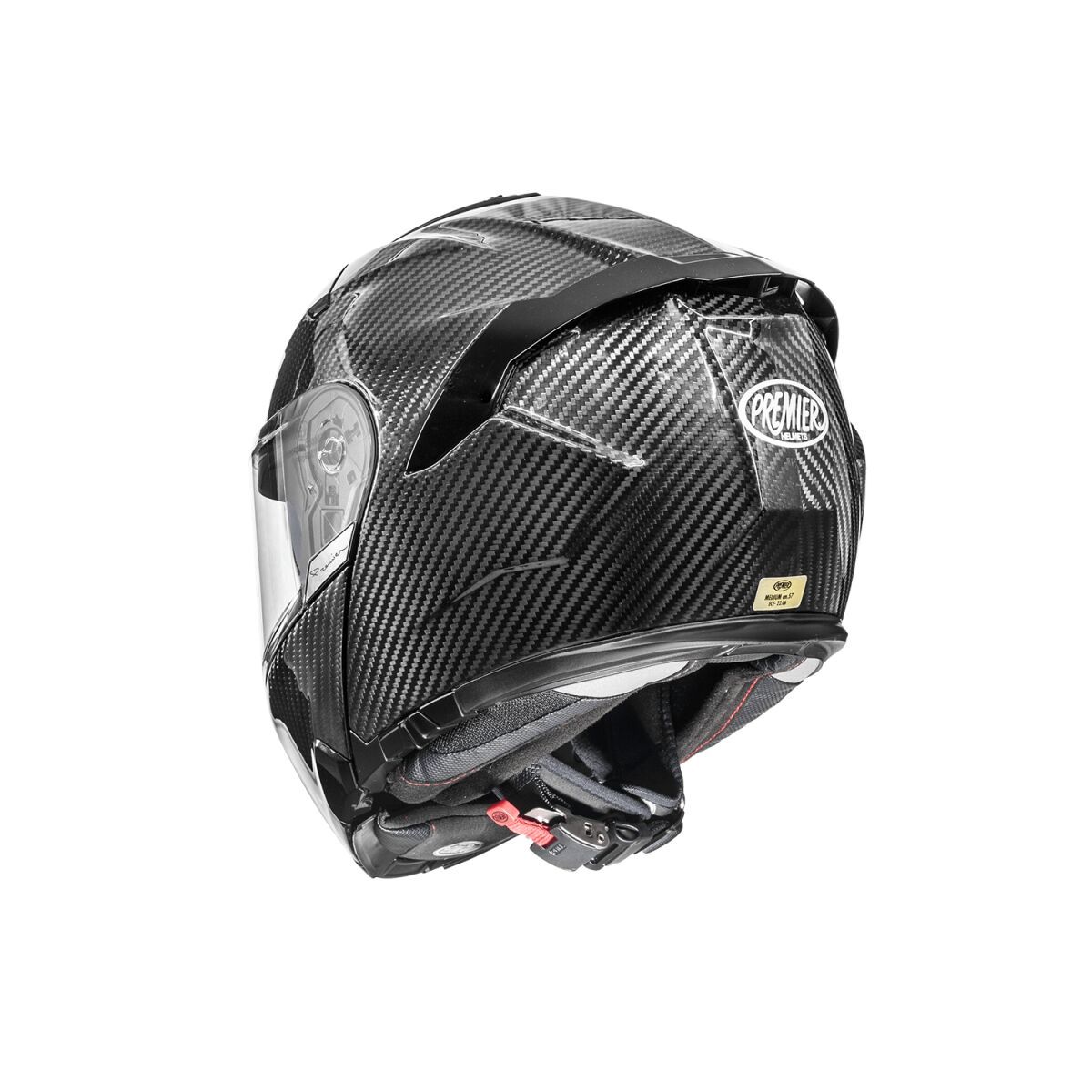 Legacy GT Carbon HelmetInner shell construction is EPS material allocated at different densities to disperse energy released in case of impact. Outer shell construction uses two mould sizes to increase performance dependant on size, using aramid carbon fiber combined with epoxy resin to make shell lightweight, elastic and resistant. Flip-up function transforms helmet from full face to open face without having to remove the chin guard itself. Chin guard is precisely entirely made of carbon fiber. Opening and closing mechanism is easily operated by a button on lower part of the chin guard. Small shell sizes range from XS to M and larger shell size covers L to XXL. Visor is injection moulded transparent polycarbonate and has anti-scratch treatment. In addition helmet includes concealed internal Dark visor also anti-scratch treated, easily operated with one hand via button located on the lower edge of the outer shell. Ventilation is provided by an air intake on the chin guard and tow extractors positioned on upper part of shell for optimal ventilation. All ventilation devices are adjustable for controlling the level of ventilation. "Advanced Padding System" kit included with the helmet allows interior to be customized for better fit and comfort. The interiors are completely removable and washable and made hypoallergenic thanks to the Sanitized treatment. Equipped with external housing for the installation of Bluetooth® communication devices. Equipped with micrometric chinstrap for easy adjustment and quick release. Nose guard and chinstrap are standard equipment.