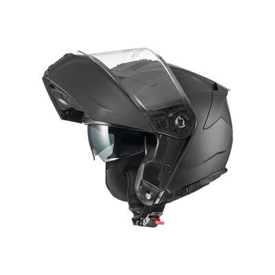 Legacy GT HelmetInner shell construction is EPS material allocated at different densities to disperse energy released in case of impact. Outer shell construction uses two mould sizes to increase performance dependant on size, using aramid carbon fiber combined with epoxy resin to make shell lightweight, elastic and resistant. Flip-up function transforms helmet from full face to open face without having to remove the chin guard itself. Opening and closing mechanism is easily operated by a button on lower part of the chin guard. Small shell sizes range from XS to M and larger shell size covers L to XXL. Visor is injection moulded transparent polycarbonate and has anti-scratch treatment. In addition helmet includes concealed internal Dark visor also anti-scratch treated, easily operated with one hand via button located on the lower edge of the outer shell. Ventilation is provided by an air intake on the chin guard and tow extractors positioned on upper part of shell for optimal ventilation. All ventilation devices are adjustable for controlling the level of ventilation. "Advanced Padding System" kit included with the helmet allows interior to be customized for better fit and comfort. The interiors are completely removable and washable and made hypoallergenic thanks to the Sanitized treatment. Equipped with external housing for the installation of Bluetooth® communication devices. Equipped with micrometric chinstrap for easy adjustment and quick release. Nose guard and chinstrap are standard equipment.
