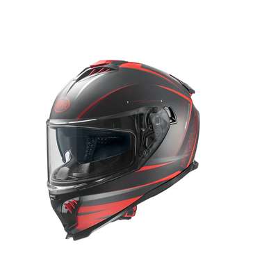 Typhoon FR HelmetThermoplastic outer shell construction uses two mould sizes to increase performance dependant on size chosen. Small shell covers sizes from XS to M, while larger shell covers sizes from L to XXL. Inner shell construction is EPS material allocated at different densities to disperse energy released un case of impact. Scratch-resistant polycarbonate visor with a special locking system, also has dark concealed inner visor allowing riding in all weather and light conditions. Visor is equipped with Pinlock® lens included which can be mounted comfortably without aid of equipment. Four element ventilation system consists of large air intake on front, one on the chin guard while two extractors on the back allow for optimal ventilation. "Advanced Padding System" kit included with the helmet allows interior to be customized for better fit and comfort. Thanks to the Easy Fit system the internal padding has been arranged to include sufficient space for eyeglasses. Equipped with micrometric chinstrap and is prepared for installation of Bluetooth® communication systems.
