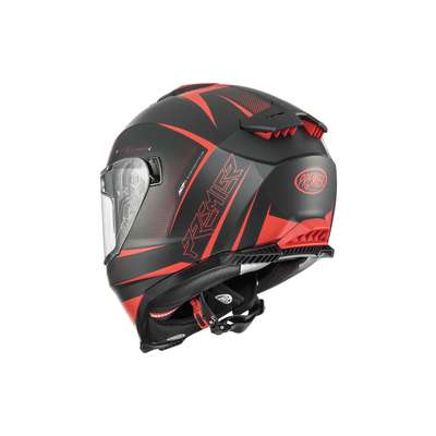 Typhoon FR HelmetThermoplastic outer shell construction uses two mould sizes to increase performance dependant on size chosen. Small shell covers sizes from XS to M, while larger shell covers sizes from L to XXL. Inner shell construction is EPS material allocated at different densities to disperse energy released un case of impact. Scratch-resistant polycarbonate visor with a special locking system, also has dark concealed inner visor allowing riding in all weather and light conditions. Visor is equipped with Pinlock® lens included which can be mounted comfortably without aid of equipment. Four element ventilation system consists of large air intake on front, one on the chin guard while two extractors on the back allow for optimal ventilation. "Advanced Padding System" kit included with the helmet allows interior to be customized for better fit and comfort. Thanks to the Easy Fit system the internal padding has been arranged to include sufficient space for eyeglasses. Equipped with micrometric chinstrap and is prepared for installation of Bluetooth® communication systems.