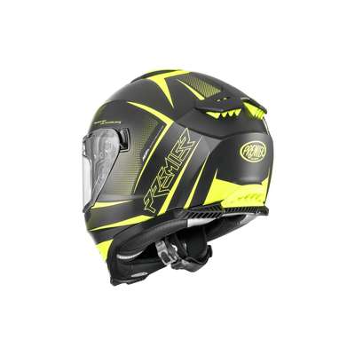 Typhoon FR HelmetThermoplastic outer shell construction uses two mould sizes to increase performance dependant on size chosen. Small shell covers sizes from XS to M, while larger shell covers sizes from L to XXL. Inner shell construction is EPS material allocated at different densities to disperse energy released un case of impact. Scratch-resistant polycarbonate visor with a special locking system, also has dark concealed inner visor allowing riding in all weather and light conditions. Visor is equipped with Pinlock® lens included which can be mounted comfortably without aid of equipment. Four element ventilation system consists of large air intake on front, one on the chin guard while two extractors on the back allow for optimal ventilation. "Advanced Padding System" kit included with the helmet allows interior to be customized for better fit and comfort. Thanks to the Easy Fit system the internal padding has been arranged to include sufficient space for eyeglasses. Equipped with micrometric chinstrap and is prepared for installation of Bluetooth® communication systems.