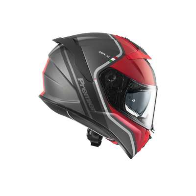 Devil PH HelmetOuter shell construction is made using two different sizes of moulds of carbon aramidic fibre combined with epoxy resin. Inner shell is made of EPS material, a particular pressed polystyrene in several layers at different density. Construction gives helmet good performance in energy distribution in case of crash and is lightweight. Visor is anti-scratch polycarbonate and helmet is equipped with a small internal dark retractable visor that allows optimum driving under any weather and light condition. Visor is designed for insertion of the Pinlock® anti-fog system with the Pinlock® lens is included. Visor closing mechanism placed on the chin protection. Helmet also has special mechanism that with a simple click makes helmet safer and noiseless even at high speeds. Wide air vents placed on the front side chin protection allow good ventilation while rear extractor ensures exit of hot air. "Advanced Padding System" kit is included in the package allowing customer to customize interior fit that is removable,washable and made hypoallergenic by Sanitized treatment. Internal paddings are placed to leave space for eyeglasses. Micrometric strap that allows a rapid release and it is prepared for the installation of Bluetooth® communication system.