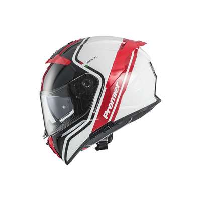 Devil PH HelmetOuter shell construction is made using two different sizes of moulds of carbon aramidic fibre combined with epoxy resin. Inner shell is made of EPS material, a particular pressed polystyrene in several layers at different density. Construction gives helmet good performance in energy distribution in case of crash and is lightweight. Visor is anti-scratch polycarbonate and helmet is equipped with a small internal dark retractable visor that allows optimum driving under any weather and light condition. Visor is designed for insertion of the Pinlock® anti-fog system with the Pinlock® lens is included. Visor closing mechanism placed on the chin protection. Helmet also has special mechanism that with a simple click makes helmet safer and noiseless even at high speeds. Wide air vents placed on the front side chin protection allow good ventilation while rear extractor ensures exit of hot air. "Advanced Padding System" kit is included in the package allowing customer to customize interior fit that is removable,washable and made hypoallergenic by Sanitized treatment. Internal paddings are placed to leave space for eyeglasses. Micrometric strap that allows a rapid release and it is prepared for the installation of Bluetooth® communication system.
