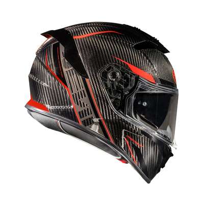 Devil Carbon ST2 HelmetOuter shell construction is made using two different sizes of moulds of carbon aramidic fibre combined with epoxy resin. Inner shell is made of EPS material, a particular pressed polystyrene in several layers at different density. Small shell size covers sizes ranging from XS to M, while larger shell size covers sizes ranging from M to XXL. Construction gives helmet good performance in energy distribution in case of crash and is lightweight. Visor is anti-scratch polycarbonate and helmet is equipped with a small internal dark retractable visor that allows optimum driving under any weather and light condition. Visor is designed for insertion of the Pinlock® anti-fog system with the Pinlock® lens is included. Visor closing mechanism placed on the chin protection. Helmet also has special mechanism that with a simple click makes helmet safer and noiseless even at high speeds. Wide air vents placed on the front side chin protection allow good ventilation while rear extractor ensures exit of hot air. "Advanced Padding System" kit is included in the package allowing customer to customize interior fit that is removable,washable and made hypoallergenic by Sanitized treatment. Internal paddings are placed to leave space for eyeglasses. Micrometric strap that allows a rapid release and it is prepared for the installation of Bluetooth® communication system.