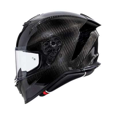 Hyper Carbon HelmetOuter shell is produced in double measure to ensure better fit. Outer shell construction is made of carbon fiber that makes the helmet lightweight but resistant in case of impact. Inner shell construction is pressure-plated in EPS with differentiated density. Air vents on top of the shell and on chin ensure air flow while rear extractor ensures circulation of air. Visor block is placed in the center of the chin strap and is easy to operate: a simple click makes the helmet even quieter and safer especially at high speeds. Advanced padding System kit included allows fit customisation and all interiors are breathable, removable, washable and hypoallergenic thanks to the Sanitized treatment. Locking system is double-ring. Predisposed to the installation of Bluetooth® communication systems. High-strength clear visor with anti-scratch treatment and designed for insertion of the Pinlock® anti-fog system included. Pinlock® lens is included.