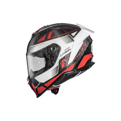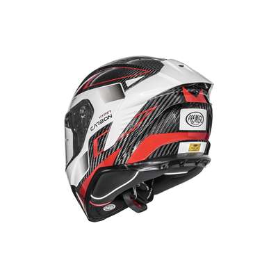 Hyper Carbon HelmetOuter shell is produced in double measure to ensure better fit. Outer shell construction is made of carbon fiber that makes the helmet lightweight but resistant in case of impact. Inner shell construction is pressure-plated in EPS with differentiated density. Air vents on top of the shell and on chin ensure air flow while rear extractor ensures circulation of air. Visor block is placed in the center of the chin strap and is easy to operate: a simple click makes the helmet even quieter and safer especially at high speeds. Advanced padding System kit included allows fit customisation and all interiors are breathable, removable, washable and hypoallergenic thanks to the Sanitized treatment. Locking system is double-ring. Predisposed to the installation of Bluetooth® communication systems. High-strength clear visor with anti-scratch treatment and designed for insertion of the Pinlock® anti-fog system included. Pinlock® lens is included.