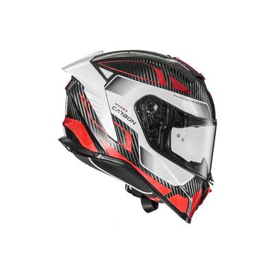 Hyper Carbon HelmetOuter shell is produced in double measure to ensure better fit. Outer shell construction is made of carbon fiber that makes the helmet lightweight but resistant in case of impact. Inner shell construction is pressure-plated in EPS with differentiated density. Air vents on top of the shell and on chin ensure air flow while rear extractor ensures circulation of air. Visor block is placed in the center of the chin strap and is easy to operate: a simple click makes the helmet even quieter and safer especially at high speeds. Advanced padding System kit included allows fit customisation and all interiors are breathable, removable, washable and hypoallergenic thanks to the Sanitized treatment. Locking system is double-ring. Predisposed to the installation of Bluetooth® communication systems. High-strength clear visor with anti-scratch treatment and designed for insertion of the Pinlock® anti-fog system included. Pinlock® lens is included.
