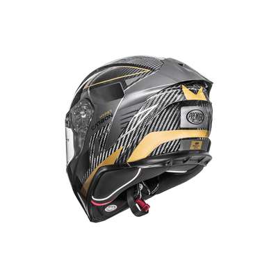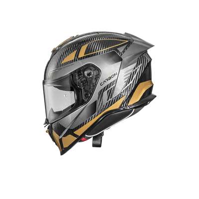 Hyper Carbon HelmetOuter shell is produced in double measure to ensure better fit. Outer shell construction is made of carbon fiber that makes the helmet lightweight but resistant in case of impact. Inner shell construction is pressure-plated in EPS with differentiated density. Air vents on top of the shell and on chin ensure air flow while rear extractor ensures circulation of air. Visor block is placed in the center of the chin strap and is easy to operate: a simple click makes the helmet even quieter and safer especially at high speeds. Advanced padding System kit included allows fit customisation and all interiors are breathable, removable, washable and hypoallergenic thanks to the Sanitized treatment. Locking system is double-ring. Predisposed to the installation of Bluetooth® communication systems. High-strength clear visor with anti-scratch treatment and designed for insertion of the Pinlock® anti-fog system included. Pinlock® lens is included.