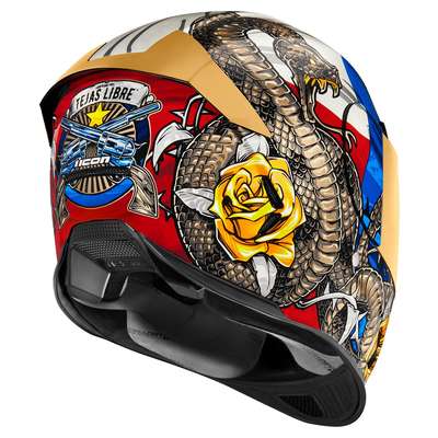 Airframe Pro™ Tejas Libre HelmetLinear ported forehead vents Five-piece modular liner with moisture-wicking Hydradry™ Low-profile vents throughout the shell Prolock™ positive shield locking system Sculpted neck roll reduces jacket/suit interference Fog-free ICON Optics™ Shield with Rapid-Release™ system Removable breath deflector and chin curtain Includes Clear & RST Bronze Icon Optics™ shields