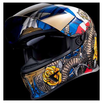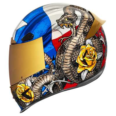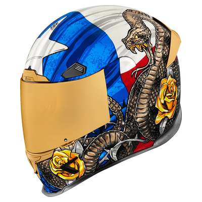 Airframe Pro™ Tejas Libre HelmetLinear ported forehead vents Five-piece modular liner with moisture-wicking Hydradry™ Low-profile vents throughout the shell Prolock™ positive shield locking system Sculpted neck roll reduces jacket/suit interference Fog-free ICON Optics™ Shield with Rapid-Release™ system Removable breath deflector and chin curtain Includes Clear & RST Bronze Icon Optics™ shields