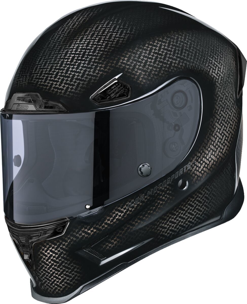Airframe Pro™ Carbon 4Tress HelmetHandcrafted composite carbon fiber shell Sculpted neck roll reduces jacket/suit interference Five-piece modular liner with moisture-wicking Hydradry™ Linear ported forehead vents Low-profile vents throughout the shell Fog-free ICON Optics™ Shield with Rapid-Release™ system Prolock™ positive shield locking system Removable breath deflector and chin curtain Includes Dark Smoke & Clear TracShields™
