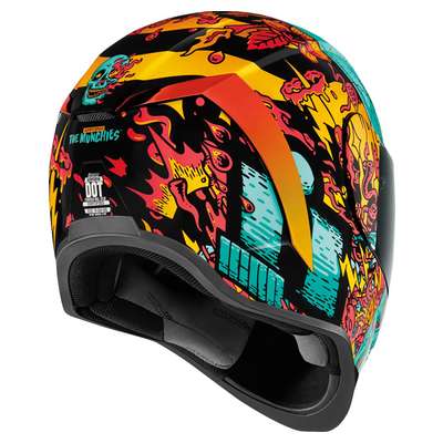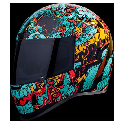 Airform™ Munchies MIPS® HelmetInternal airflow geometry Fog-free ICON Optics™ Shield with Rapid-Release™ System Injection molded polycarbonate shell for strength Sculpted neck roll Continuous venting system Prolock™ positive shield locking system Internal Dropshield™ with exterior switch The Dropshield™ visor must only be used while the main face shield is in the fully closed position Removable molded breath deflector Removable Hydradry™ 3-piece moisture wicking liner Internal speaker pockets work with ICON's R.A.U. Bluetooth device Includes Clear & Dark Smoke fog-free Optics™ shield