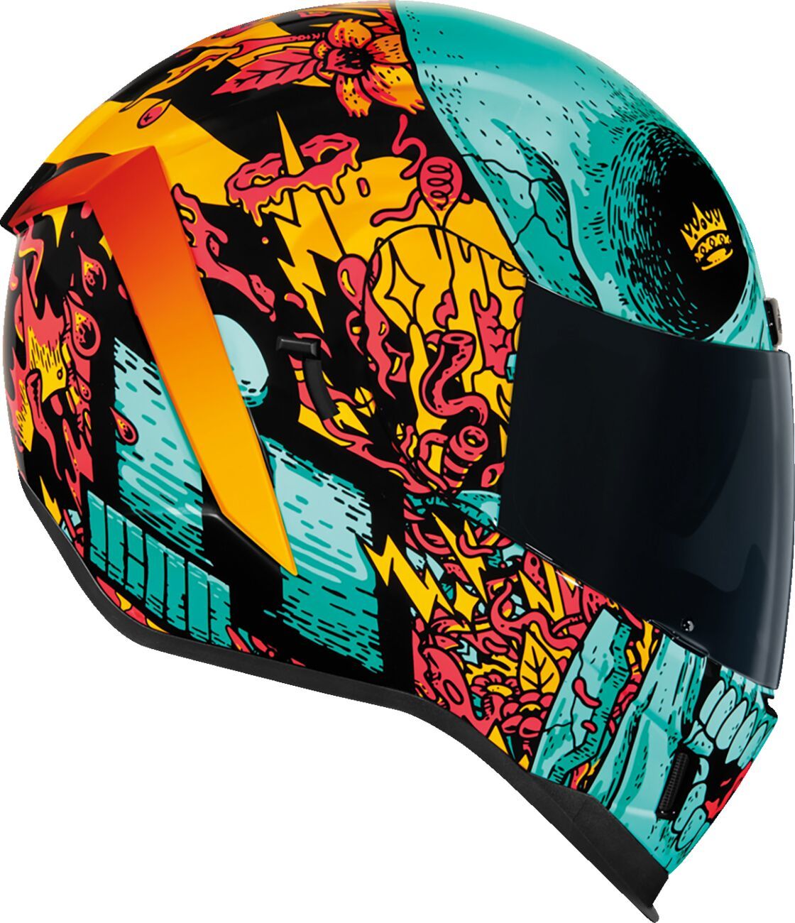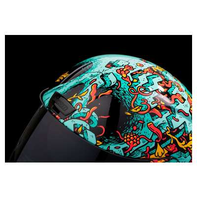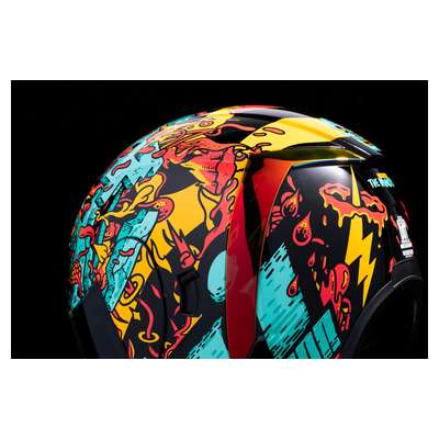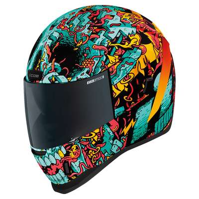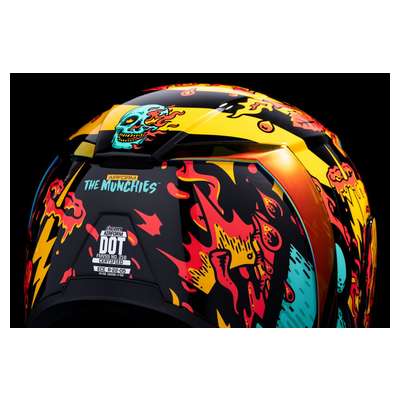 Airform™ Munchies MIPS® HelmetInternal airflow geometry Fog-free ICON Optics™ Shield with Rapid-Release™ System Injection molded polycarbonate shell for strength Sculpted neck roll Continuous venting system Prolock™ positive shield locking system Internal Dropshield™ with exterior switch The Dropshield™ visor must only be used while the main face shield is in the fully closed position Removable molded breath deflector Removable Hydradry™ 3-piece moisture wicking liner Internal speaker pockets work with ICON's R.A.U. Bluetooth device Includes Clear & Dark Smoke fog-free Optics™ shield