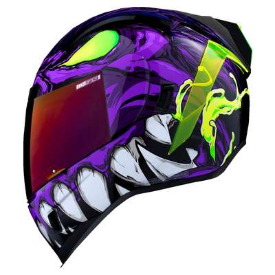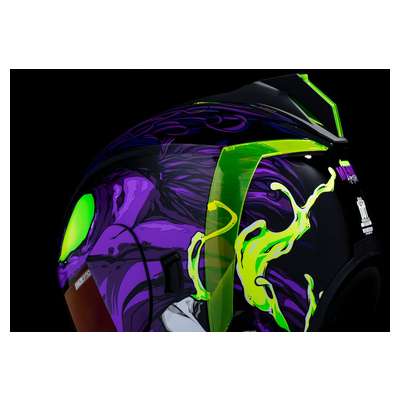 Airform™ Manik'RR MIPS® HelmetContinuous venting system Fog-free ICON Optics™ Shield with Rapid-Release™ System Injection molded polycarbonate shell for strength Internal airflow geometry Sculpted neck roll Prolock™ positive shield locking system Removable molded breath deflector The Dropshield™ visor must only be used while the main face shield is in the fully closed position Internal Dropshield™ with exterior switch Removable Hydradry™ 3-piece moisture wicking liner Internal speaker pockets work with ICON's R.A.U. Bluetooth device Includes Dark Smoke DropShield™ and Rubatone Black Speedfin™ Includes Clear & Purple RST Optics™ ShieldsSpeedfin™ includes Green DayGlo Insert