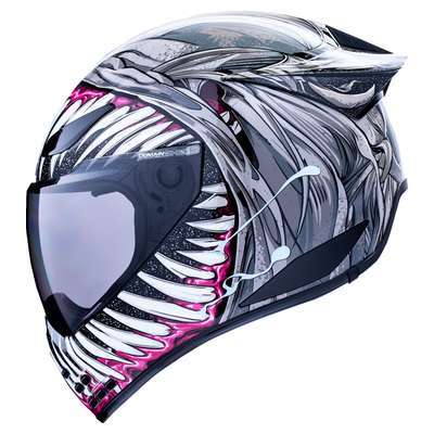 Domain™ Grand Maw HelmetHandcrafted FRP shell for optimum strength with minimized weight Sculpted neck roll Continuous venting system Removable molded breath deflector Removable Hydradry™ 3-piece moisture wicking liner Removable chin-curtain Internal airflow geometry Fog-free Domain™ Shield with Rapid-Release™ System Includes Clear and Dark Smoke Domain™ shields Includes Domain OTT Spoiler™ installed with graphics Upgradeable to HelmLink™ Bluetooth® communication system (sold separately)