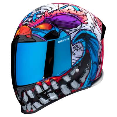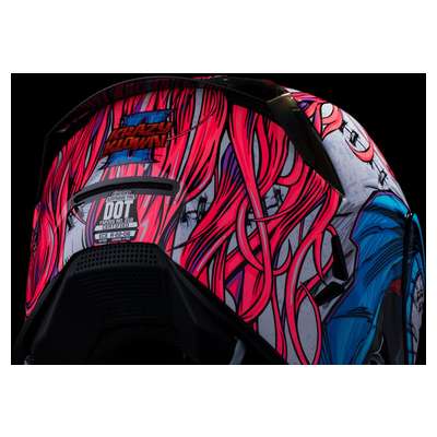Airframe Pro™ Krazy Klown 2 HelmetSculpted neck roll reduces jacket/suit interference Prolock™ positive shield locking system Five-piece modular liner with moisture-wicking Hydradry™ Fog-free ICON Optics™ Shield with Rapid-Release™ system Low-profile vents throughout the shell Linear ported forehead vents Removable breath deflector and chin curtain Handcrafted composite fiberglass FRP (fiber-reinforced plastic) shell