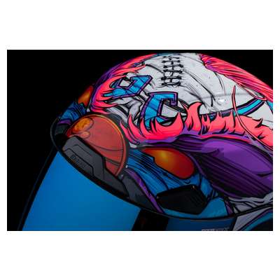 Airframe Pro™ Krazy Klown 2 HelmetSculpted neck roll reduces jacket/suit interference Prolock™ positive shield locking system Five-piece modular liner with moisture-wicking Hydradry™ Fog-free ICON Optics™ Shield with Rapid-Release™ system Low-profile vents throughout the shell Linear ported forehead vents Removable breath deflector and chin curtain Handcrafted composite fiberglass FRP (fiber-reinforced plastic) shell