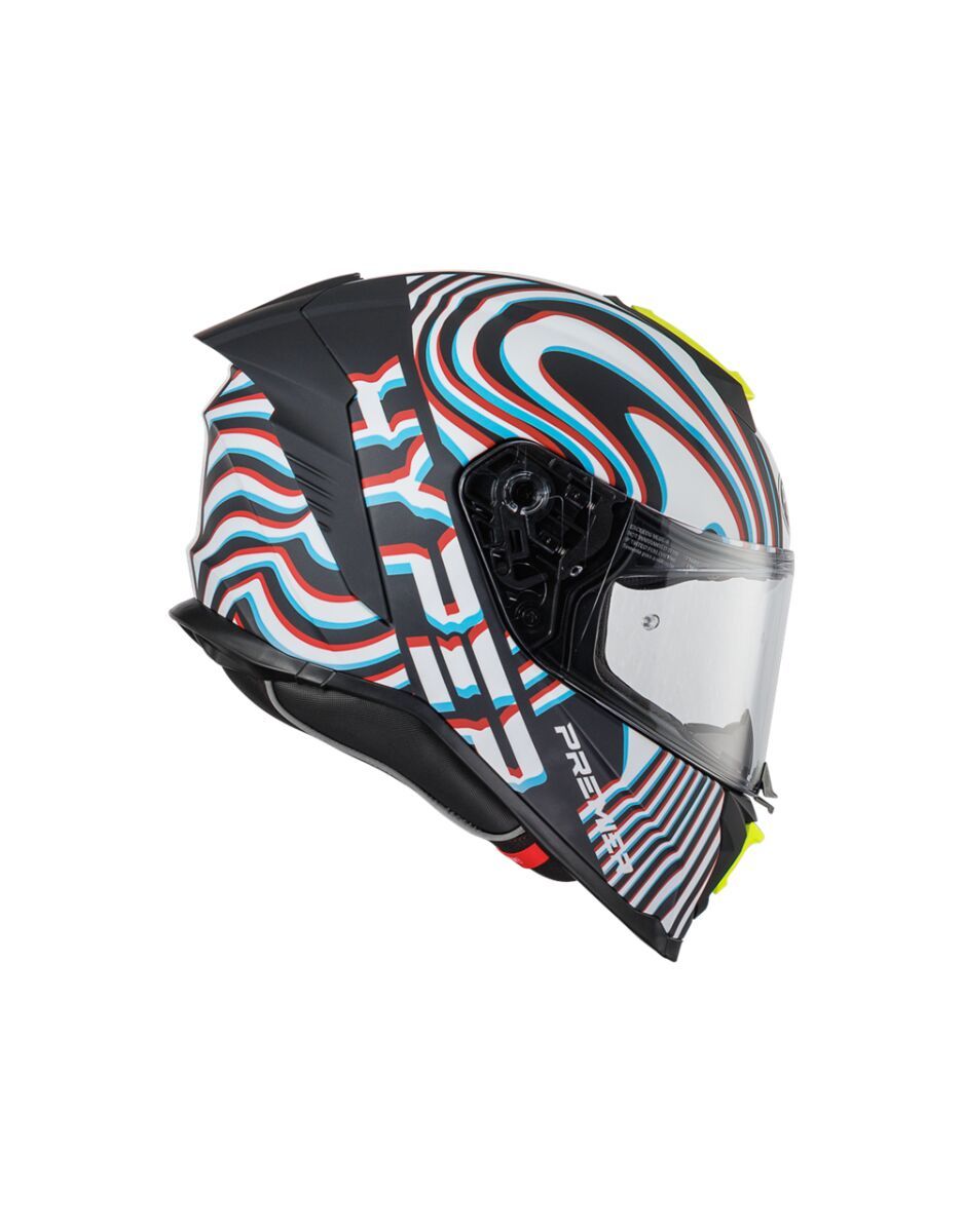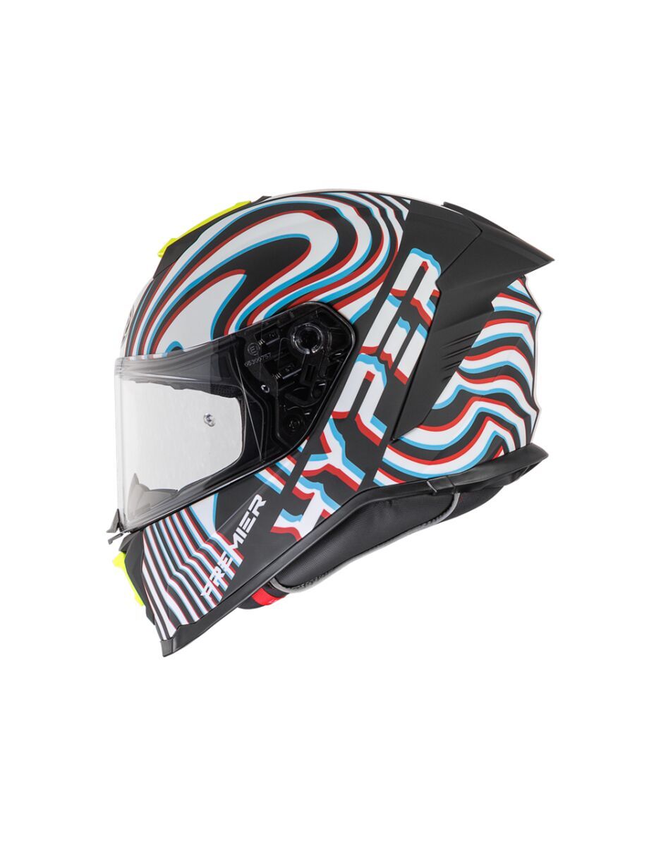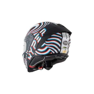 Hyper PS HelmetOuter shell is produced in double measure to ensure better fit. Outer shell construction is made of tricomposite fiber, a mix between dyneema, carbon fiber, aramid fiber and epoxy resin that makes the helmet elastic but resistant in case of impact. Inner shell construction is pressure-plated in EPS with differentiated density. Air vents on top of the shell and on chin ensure air flow while rear extractor ensures circulation of air. Visor block is placed in the center of the chin strap and is easy to operate: a simple click makes the helmet even quieter and safer especially at high speeds. Advanced padding System kit included allows fit customisation and all interiors are breathable, removable, washable and hypoallergenic thanks to the Sanitized treatment. Locking system is double-ring Predisposed to the installation of Bluetooth® communication systems. High-strength clear visor with anti-scratch treatment and designed for insertion of the Pinlock® anti-fog system included. Pinlock® lens is included.