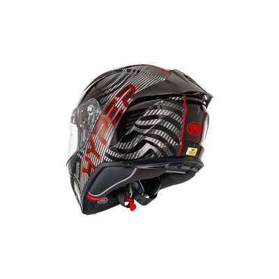 Hyper Carbon PS HelmetOuter shell is produced in double measure to ensure better fit. Outer shell construction is made of tricomposite fiber, a mix between carbon fiber, aramid fiber and epoxy resin that makes the helmet elastic but resistant in case of impact. Inner shell construction is pressure-plated in EPS with differentiated density. Air vents on top of the shell and on chin ensure air flow while rear extractor ensures circulation of air. Visor block is placed in the center of the chin strap and is easy to operate: a simple click makes the helmet even quieter and safer especially at high speeds. Advanced padding System kit included allows fit customisation and all interiors are breathable, removable, washable and hypoallergenic thanks to the Sanitized treatment. Locking system is double-ring Predisposed to the installation of Bluetooth® communication systems. High-strength clear visor with anti-scratch treatment and designed for insertion of the Pinlock® anti-fog system included. Pinlock® lens is included.
