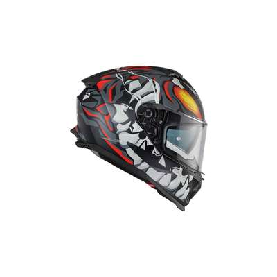 Typhoon MO HelmetThermoplastic outer shell construction uses two mould sizes to increase performance dependant on size chosen. Small shell covers sizes from XS to M, while larger shell covers sizes from L to XXL. Inner shell construction is EPS material allocated at different densities to disperse energy released un case of impact. Scratch-resistant polycarbonate visor with a special locking system, also has dark concealed inner visor allowing riding in all weather and light conditions. Visor is equipped with Pinlock® lens included which can be mounted comfortably without aid of equipment. Four element ventilation system consists of large air intake on front, one on the chin guard while two extractors on the back allow for optimal ventilation. "Advanced Padding System" kit included with the helmet allows interior to be customized for better fit and comfort. Thanks to the Easy Fit system the internal padding has been arranged to include sufficient space for eyeglasses. Equipped with micrometric chinstrap and is prepared for installation of Bluetooth® communication systems.