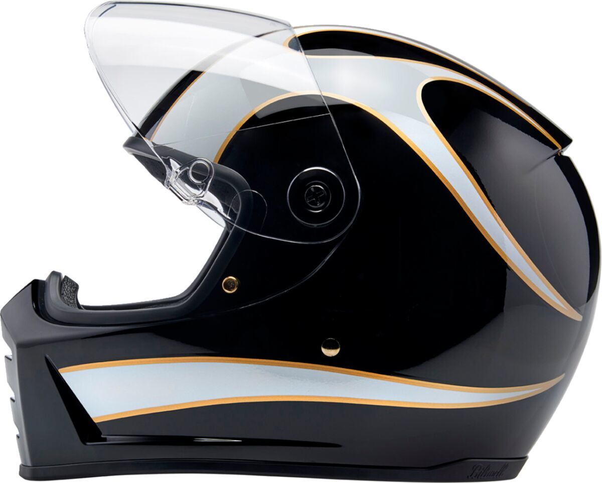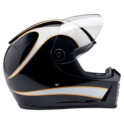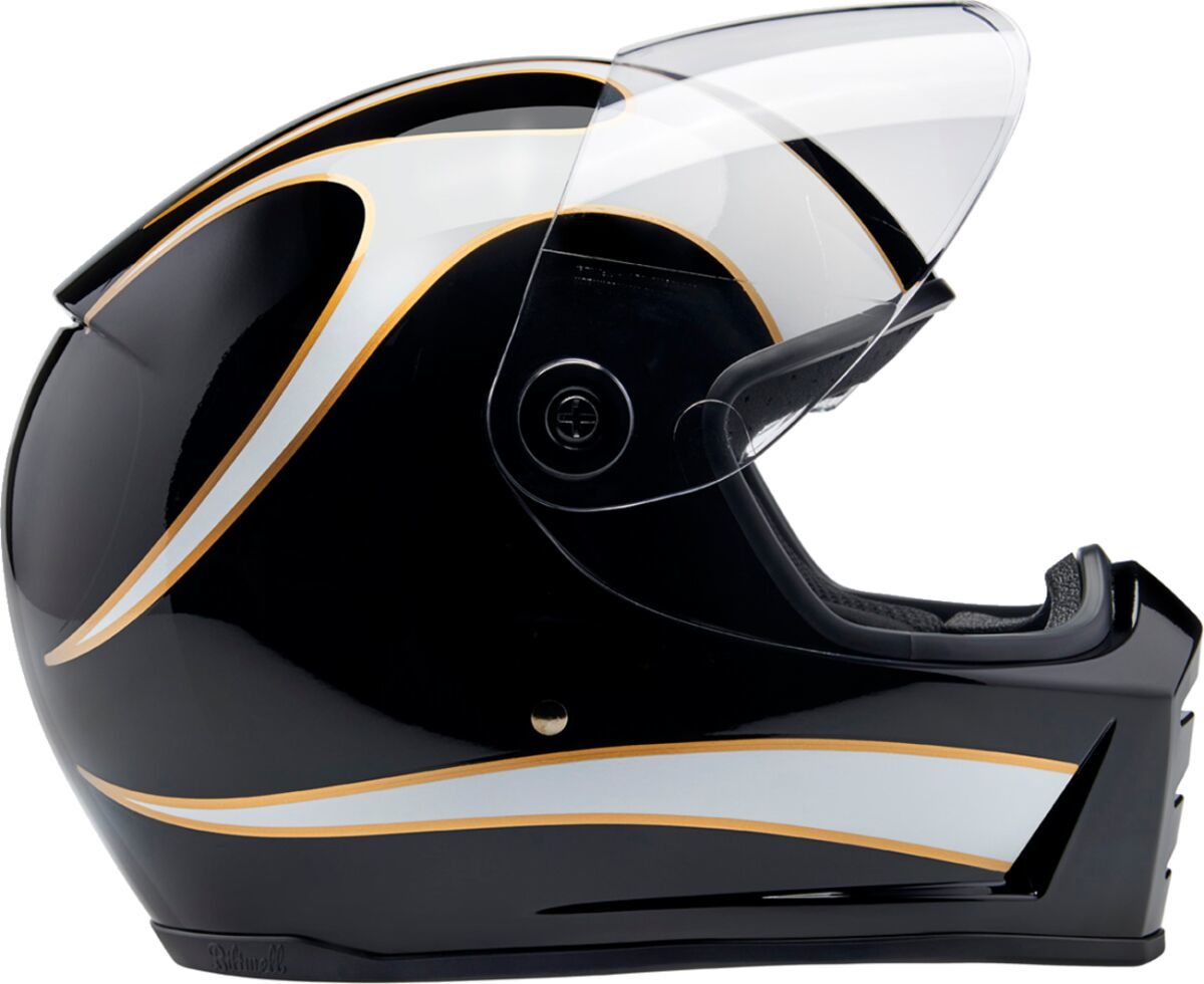 Lane Splitter 22.06 HelmetInjection-molded ABS outer shell is rugged yet lightweight Expanded Polystrene (EPS) liner dissipates impact loads and fortifies helmet structure for a secure fit without compromising comfort Removable/replaceable comfort liner and cheek pads feature brushed fleece Lycra touch points to absorb and evaporate perspiration Chin strap features brushed fleece Lycra touch points for comfort and an adjustable strap end retainer Molded recesses inside EPS interior shell accept select aftermarket audio and communication components Rugged shield hinge hardware with robust detents allows you to open the shield at slow speeds for increased airflow