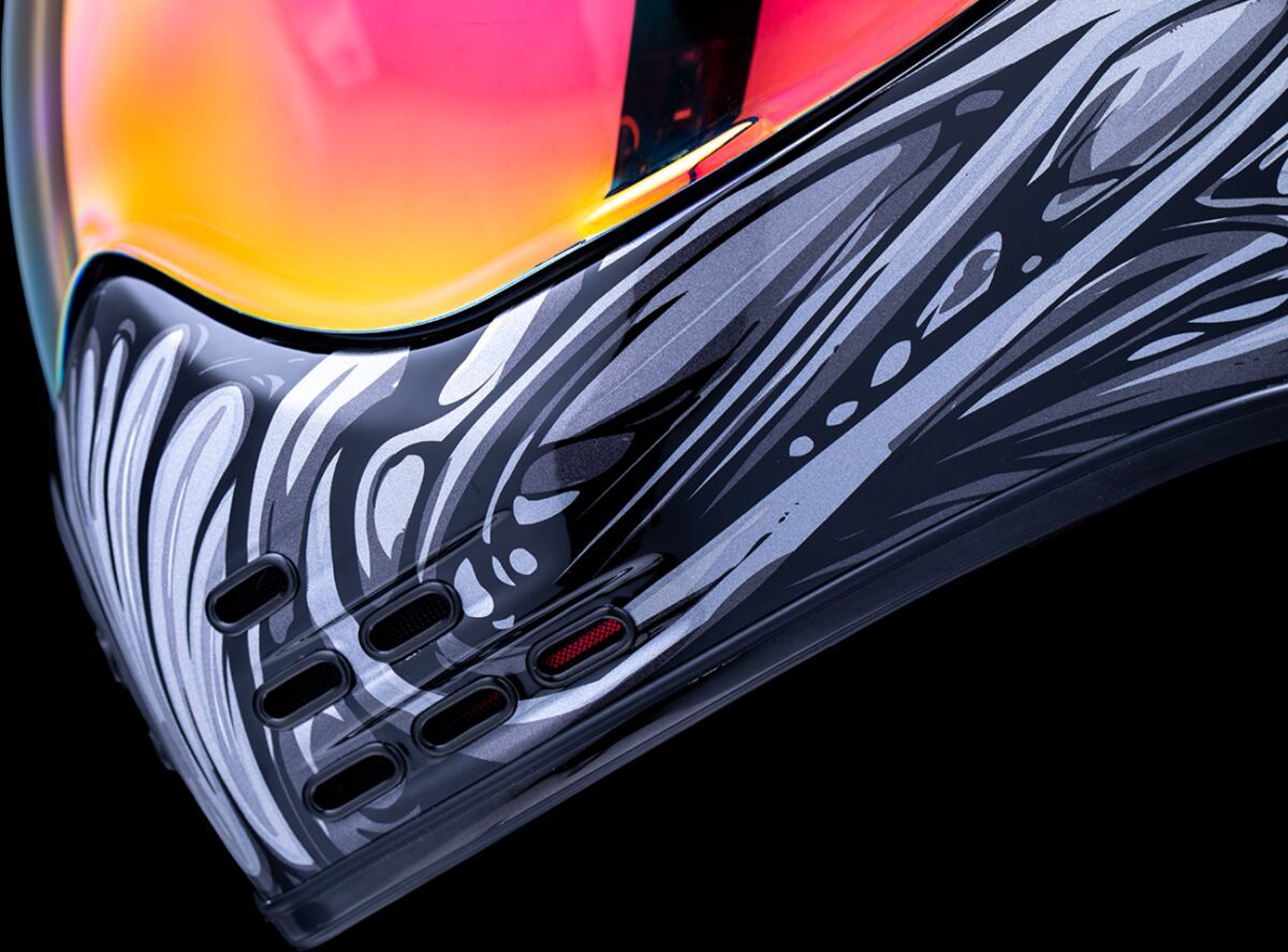 Domain™ Nouveau HelmetSculpted neck roll Continuous venting system Handcrafted FRP shell for optimum strength with minimized weight Removable molded breath deflector Fog-free Domain™ Shield with Rapid-Release™ System Internal airflow geometry Removable Hydradry™ 3-piece moisture wicking liner Removable chin-curtain Upgradeable to HelmLink™ Bluetooth® communication system (sold separately) Includes Clear & Dark Smoke Domain™ shields.