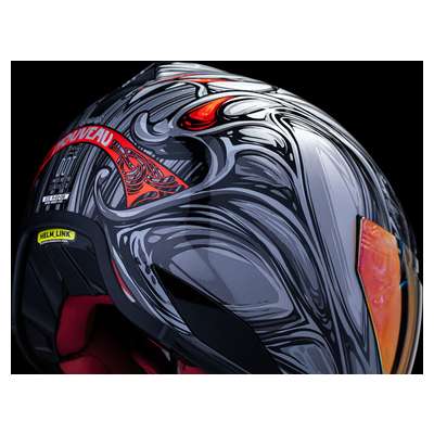 Domain™ Nouveau HelmetSculpted neck roll Continuous venting system Handcrafted FRP shell for optimum strength with minimized weight Removable molded breath deflector Fog-free Domain™ Shield with Rapid-Release™ System Internal airflow geometry Removable Hydradry™ 3-piece moisture wicking liner Removable chin-curtain Upgradeable to HelmLink™ Bluetooth® communication system (sold separately) Includes Clear & Dark Smoke Domain™ shields.