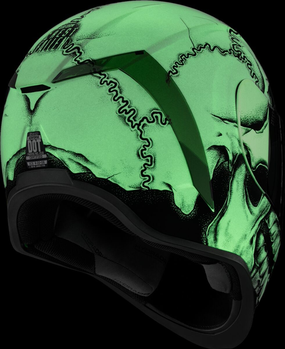 Airform™ Crestfallen MIPS® HelmetInjection molded polycarbonate shell for strength Internal airflow geometry Continuous venting system Sculpted neck roll Fog-free Icon Optics™ Shield with Rapid-Release™ System Prolock™ positive shield locking system Internal Dropshield™ with exterior switch The Dropshield™ visor must only be used while the main face shield is in the fully closed position Removable molded breath deflector Removable Hydradry™ 3-piece moisture wicking liner Internal speaker pockets work with Icon's R.A.U. Bluetooth device