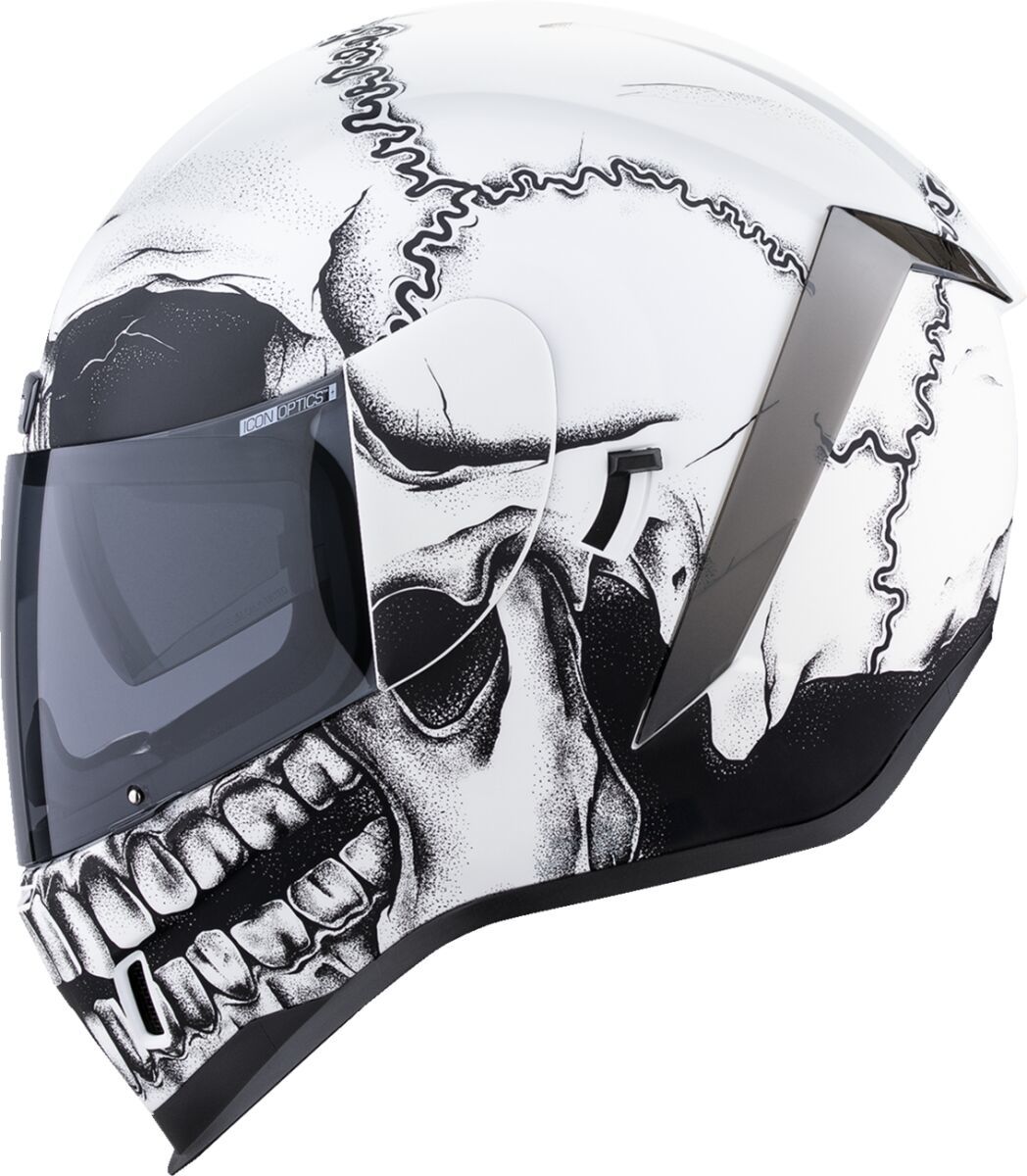 Airform™ Crestfallen MIPS® HelmetInjection molded polycarbonate shell for strength Internal airflow geometry Continuous venting system Sculpted neck roll Fog-free Icon Optics™ Shield with Rapid-Release™ System Prolock™ positive shield locking system Internal Dropshield™ with exterior switch The Dropshield™ visor must only be used while the main face shield is in the fully closed position Removable molded breath deflector Removable Hydradry™ 3-piece moisture wicking liner Internal speaker pockets work with Icon's R.A.U. Bluetooth device