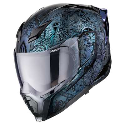 Ultraflite™ Opal Mandala MIPS® HelmetIntermediate-oval head-form fit Equipped with MIPS® safety system Handcrafted FRP composite shell for optimum strength with minimized weight Fog-free DropShield Ultra™ with exterior switch Premium comfort liner with moisture-wicking Hydradry™ and Ax®Suede for a custom fit Emergency Release cheek pads installed Multiple oversized intake and exhaust ports Quick-change fog-free Ultrashield™ with side plates Removable molded breath deflector and chin curtain Recessed twin channel supervent cooling system Includes clear Pinlock® prepared shield for added clarity in extreme conditions (Pinlock® insert lens sold separately) Upgradeable to HelmLink™ Bluetooth® communication system (sold separately) Includes dark smoke fog-free Ultrashield™ The Dropshield Ultra™ visor must only be used while the main face shield is in the fully closed position.