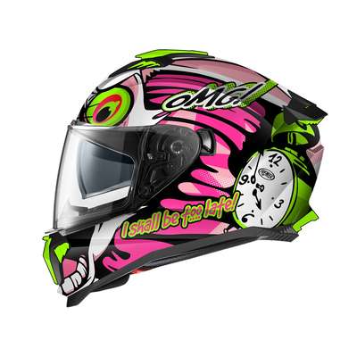 Typhoon BU HelmetThermoplastic outer shell construction uses two mould sizes to increase performance dependant on size chosen. Small shell covers sizes from XS to M, while larger shell covers sizes from L to XXL. Inner shell construction is EPS material allocated at different densities to disperse energy released un case of impact. Scratch-resistant polycarbonate visor with a special locking system, also has dark concealed inner visor allowing riding in all weather and light conditions. Visor is equipped with Pinlock® lens included which can be mounted comfortably without aid of equipment. Four element ventilation system consists of large air intake on front, one on the chin guard while two extractors on the back allow for optimal ventilation. "Advanced Padding System" kit included with the helmet allows interior to be customized for better fit and comfort. Thanks to the Easy Fit system the internal padding has been arranged to include sufficient space for eyeglasses. Equipped with micrometric chinstrap and is prepared for installation of Bluetooth® communication systems.