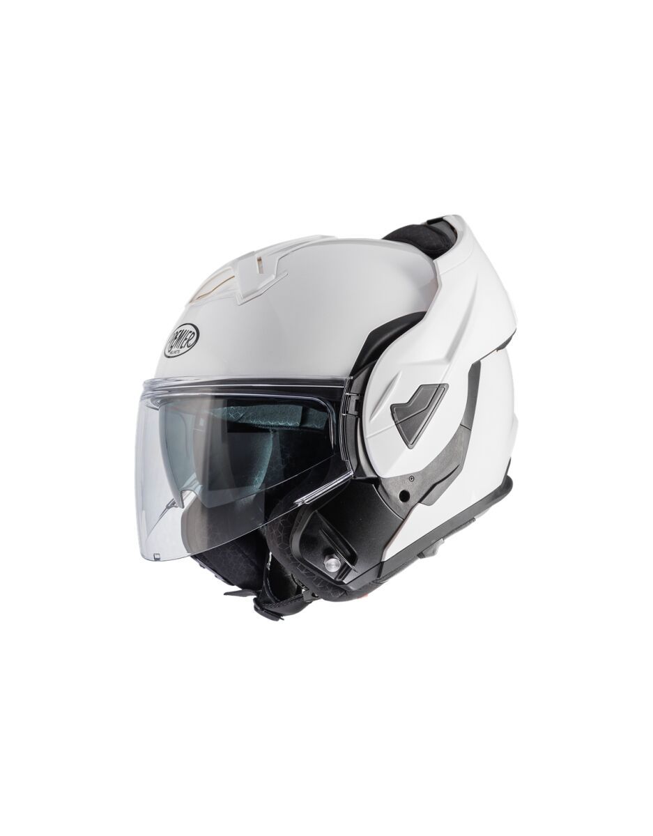 X-Charger HelmetHelmet representing an evolution of everyday modular helmets equipped with a fully rotating chin guard, that can be used in both open and integral configuration. Equipped with an integrated sun visor (Dark Smoke) easily operated via side control on the left side of the shell. Shell of the helmet is made of Advanced Polycarbonate offering strength and lightness, available in 3 shell sizes ensuring a perfect fit from sizes XS to 2XL. The advanced Polycarbonate shell has been designed to offer maximum lightness, comfort and precision in the fit thanks to the use of CAD technology. Designed to offer optimal balance and uniform weight distribution to ensure comfort during longer riding sessions. The visor is injection molded in transparent polycarbonate, and has an anti-scratch treatment that guarantees a long life. Helmet is also equipped with a Pinlock-ready visor to prevent foggin while riding, a Pinlock® lens comes standard with the helmet, and an internal sun visor. All Premier visors provide 99% UV-A and UV-B protection. The interior, in Sanitized fabric, is breathable, antibacterial and completely removable, ensuring freshness and hygiene in all conditions. The integrated grooves allows comfortable usage of prescription glasses or sunglasses with the helmet.