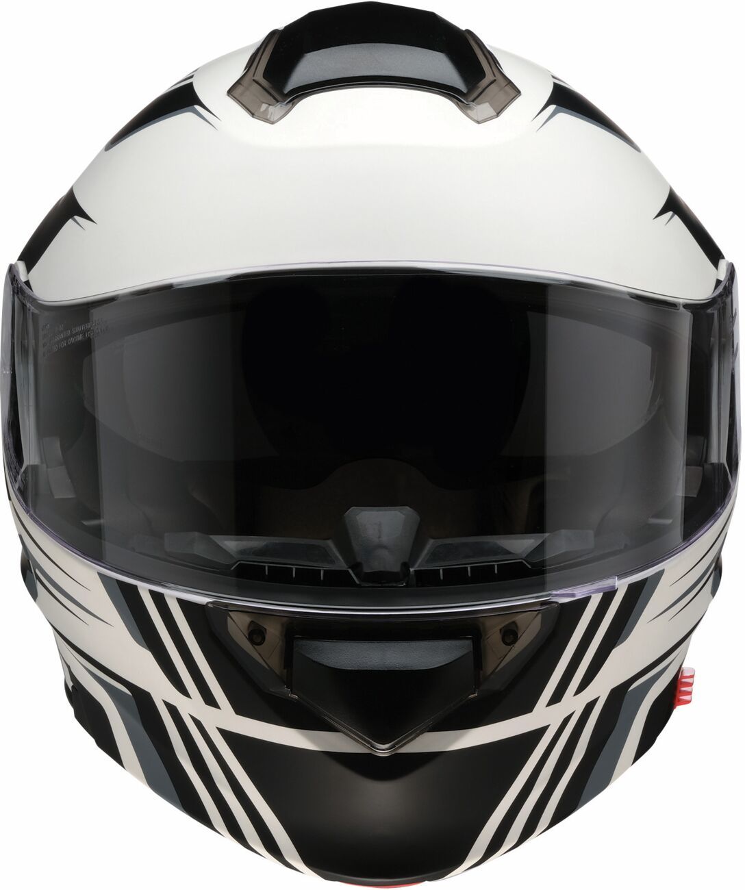 Solaris 2.0 Slater Modular HelmetEasy to remove, scratch-resistant, anti-fog polycarbonate face shield Injection-molded polycarbonate shell Closable vents at the chin, crown, and open rear exhaust for adjustable airflow Fully removable, moisture-wicking polyester helmet liner and cheek pads Drop-down rigid sun visor is easy to operate using side-mounted lever Built-in speaker pockets for communication systems Micrometric chin strap buckle Intermediate-oval helmet fit
