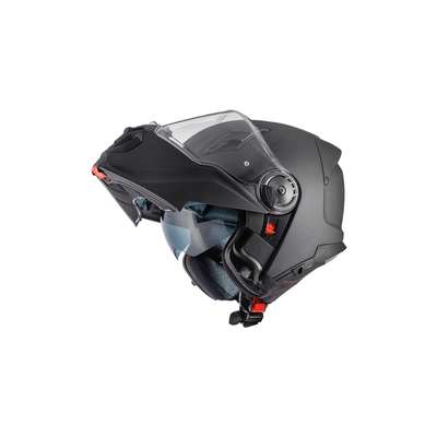 Land Cruiser HelmetInnovative flip-up helmet combining design and versatility. Thanks to the free conversion kit, this helmet easily converts from flip-up to dual sport adapting to both touring and off-road use. Outer shell construction is made of combination of carbon aramid fiber and latest generation epoxy resin, providing lightness, elasticity and impact resistance. Inner shell is made of differentiated density EPS which absorbs and disperses impact energy. Visor closure block on the chin guard which with a simple click increases safety and reduces noise even at high speeds. Visor is scratch-resistant polycarbonate and retractable internal dark visor stand out can be activated by means of a lever on the left side. Fogging problems are avoided thanks to Pinlock® lens included which is easy to instal without need for tools. Ventilation system includes front air intakes together with those on chin guard for optimal airflow, while rear extractors favor escape of hot air. Equipped with the Advanced Padding System kit allowing customisation of the interior which is made of breathable, hypoallergenic materials and treated with Sanitized®. The interior is completely removable and washable. Easy Fit system ensures comfortable fit for prescription glass wearers. Helmet is equipped with micrometric closure for quick and easy release and is prepared for installation of Bluetooth communication systems.