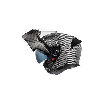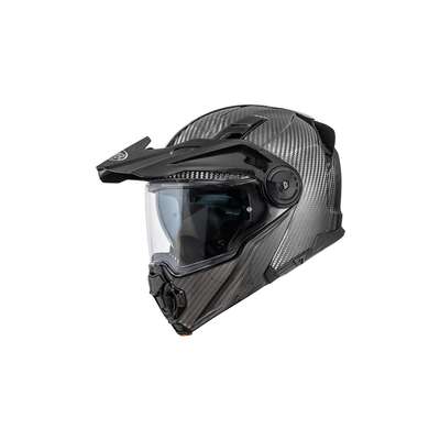 Land Cruiser Carbon HelmetInnovative flip-up helmet combining design and versatility. Thanks to the free conversion kit, this helmet easily converts from flip-up to dual sport adapting to both touring and off-road use. Outer shell construction is made of combination of carbon aramid fiber and latest generation epoxy resin, providing lightness, elasticity and impact resistance. Inner shell is made of differentiated density EPS which absorbs and disperses impact energy. Visor closure block on the chin guard which with a simple click increases safety and reduces noise even at high speeds. Visor is scratch-resistant polycarbonate and retractable internal dark visor stand out can be activated by means of a lever on the left side. Fogging problems are avoided thanks to Pinlock® lens included which is easy to instal without need for tools. Ventilation system includes front air intakes together with those on chin guard for optimal airflow, while rear extractors favor escape of hot air. Equipped with the Advanced Padding System kit allowing customisation of the interior which is made of breathable, hypoallergenic materials and treated with Sanitized®. The interior is completely removable and washable. Easy Fit system ensures comfortable fit for prescription glass wearers. Helmet is equipped with micrometric closure for quick and easy release and is prepared for installation of Bluetooth communication systems.