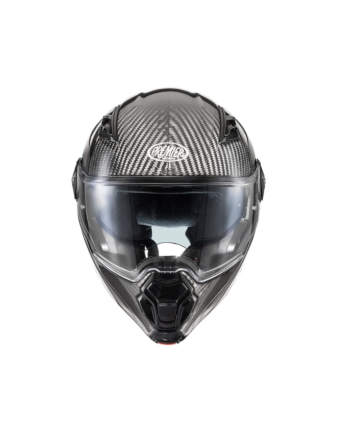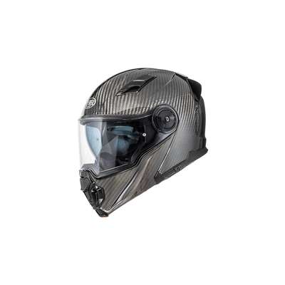 Land Cruiser Carbon HelmetInnovative flip-up helmet combining design and versatility. Thanks to the free conversion kit, this helmet easily converts from flip-up to dual sport adapting to both touring and off-road use. Outer shell construction is made of combination of carbon aramid fiber and latest generation epoxy resin, providing lightness, elasticity and impact resistance. Inner shell is made of differentiated density EPS which absorbs and disperses impact energy. Visor closure block on the chin guard which with a simple click increases safety and reduces noise even at high speeds. Visor is scratch-resistant polycarbonate and retractable internal dark visor stand out can be activated by means of a lever on the left side. Fogging problems are avoided thanks to Pinlock® lens included which is easy to instal without need for tools. Ventilation system includes front air intakes together with those on chin guard for optimal airflow, while rear extractors favor escape of hot air. Equipped with the Advanced Padding System kit allowing customisation of the interior which is made of breathable, hypoallergenic materials and treated with Sanitized®. The interior is completely removable and washable. Easy Fit system ensures comfortable fit for prescription glass wearers. Helmet is equipped with micrometric closure for quick and easy release and is prepared for installation of Bluetooth communication systems.