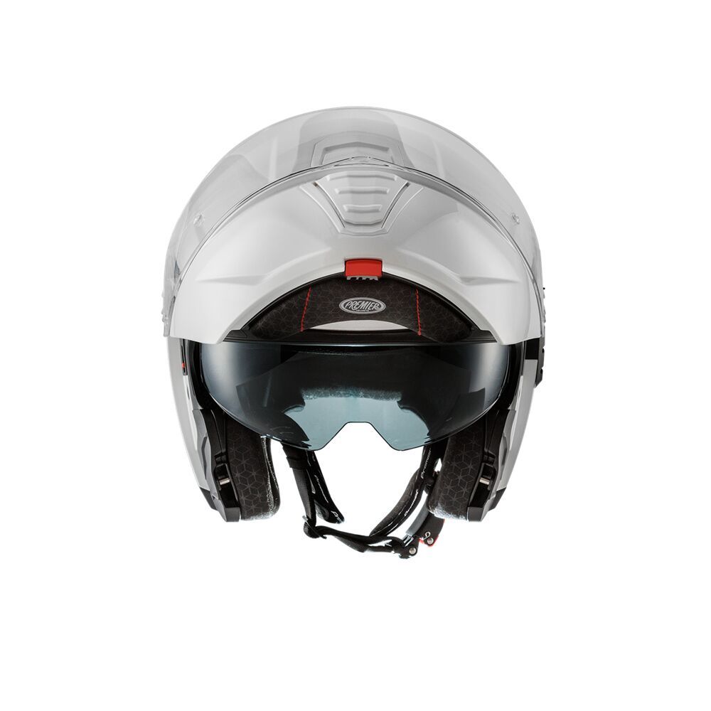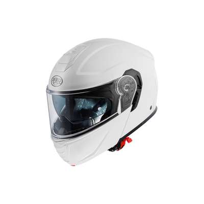 Genius Evo HelmetFlip-up helmet that can be transformed from full-face to open face by raising the chin guard without having to remove it from the shell. Opening and closing mechanism is operated by a button located on the lower part of the chin guard itself. Outer shell construction is made of ABS thermoplastic material which is elastic and resistant in case of a impact. Inner shell construction is made of EPS material with different densities. Internal ventilation consists of intake on the chin guard and two extractors on upper part of the shell. All ventilation devices are adjustable. Visor is injection molded in transparent polycarbonate and has anti-scratch treatment. Visor is also equipped with Pinlock® anti-fog system predisposition and a Pinlock® lens is supplied with the helmet. Helmet is also equipped with an internal retractable Dark visor which is also anti-scratch treated and operated via a button on the lower edge of the outer shell. The "Advance Padding System" is a kit that allows better customisation the fit of the helmet. Interiors are also completely removable, washable and made hypoallergenic by the Sanitized system. Easy Fit technology allows driving with prescription lenses. External housing allows installation of Bluetooth communication Devices. Micrometric closure strap allows easy adjustment and quick release.