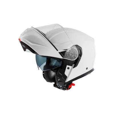 Genius Evo HelmetFlip-up helmet that can be transformed from full-face to open face by raising the chin guard without having to remove it from the shell. Opening and closing mechanism is operated by a button located on the lower part of the chin guard itself. Outer shell construction is made of ABS thermoplastic material which is elastic and resistant in case of a impact. Inner shell construction is made of EPS material with different densities. Internal ventilation consists of intake on the chin guard and two extractors on upper part of the shell. All ventilation devices are adjustable. Visor is injection molded in transparent polycarbonate and has anti-scratch treatment. Visor is also equipped with Pinlock® anti-fog system predisposition and a Pinlock® lens is supplied with the helmet. Helmet is also equipped with an internal retractable Dark visor which is also anti-scratch treated and operated via a button on the lower edge of the outer shell. The "Advance Padding System" is a kit that allows better customisation the fit of the helmet. Interiors are also completely removable, washable and made hypoallergenic by the Sanitized system. Easy Fit technology allows driving with prescription lenses. External housing allows installation of Bluetooth communication Devices. Micrometric closure strap allows easy adjustment and quick release.