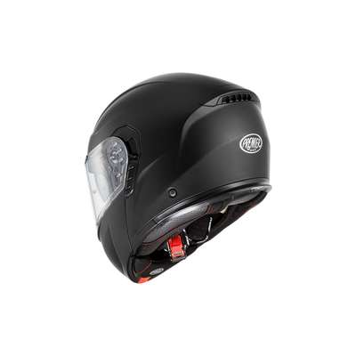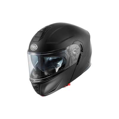 Genius Evo HelmetFlip-up helmet that can be transformed from full-face to open face by raising the chin guard without having to remove it from the shell. Opening and closing mechanism is operated by a button located on the lower part of the chin guard itself. Outer shell construction is made of ABS thermoplastic material which is elastic and resistant in case of a impact. Inner shell construction is made of EPS material with different densities. Internal ventilation consists of intake on the chin guard and two extractors on upper part of the shell. All ventilation devices are adjustable. Visor is injection molded in transparent polycarbonate and has anti-scratch treatment. Visor is also equipped with Pinlock® anti-fog system predisposition and a Pinlock® lens is supplied with the helmet. Helmet is also equipped with an internal retractable Dark visor which is also anti-scratch treated and operated via a button on the lower edge of the outer shell. The "Advance Padding System" is a kit that allows better customisation the fit of the helmet. Interiors are also completely removable, washable and made hypoallergenic by the Sanitized system. Easy Fit technology allows driving with prescription lenses. External housing allows installation of Bluetooth communication Devices. Micrometric closure strap allows easy adjustment and quick release.