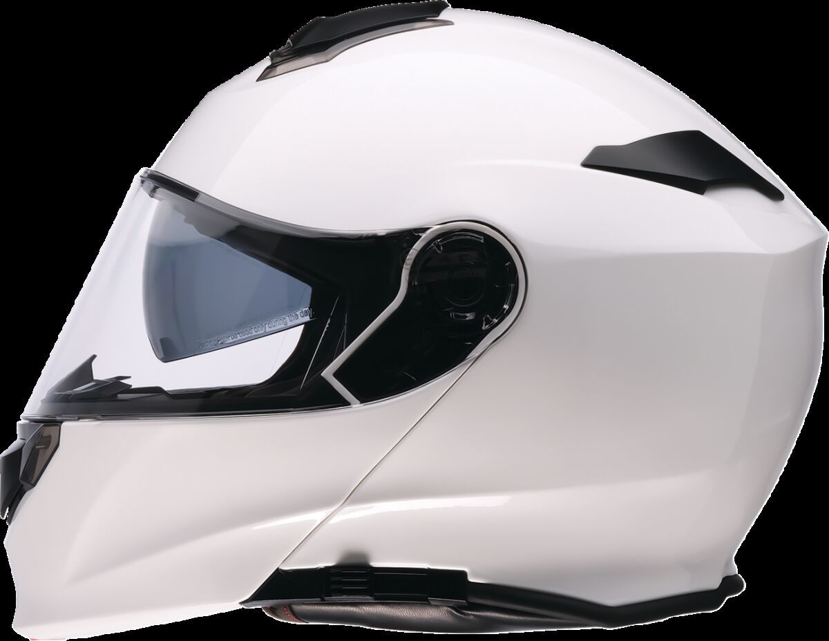 Solaris 2.0 Solid Modular HelmetInjection molded polycarbonate shell Polycarbonate shield is scratch resistant and easy to remove Drop down sun visor is easy to use and makes the helmet versatile in all lighting conditions Micrometric chin strap buckle Fully removable polyester moisture wicking liner and cheek pads Closable vents at the chin, crown, and open rear exhaust for adjustable airflow Built-in speaker pockets for communication systems Intermediate-oval helmet fit