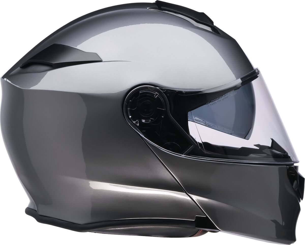 Solaris 2.0 Solid Modular HelmetInjection molded polycarbonate shell Polycarbonate shield is scratch resistant and easy to remove Drop down sun visor is easy to use and makes the helmet versatile in all lighting conditions Micrometric chin strap buckle Fully removable polyester moisture wicking liner and cheek pads Closable vents at the chin, crown, and open rear exhaust for adjustable airflow Built-in speaker pockets for communication systems Intermediate-oval helmet fit