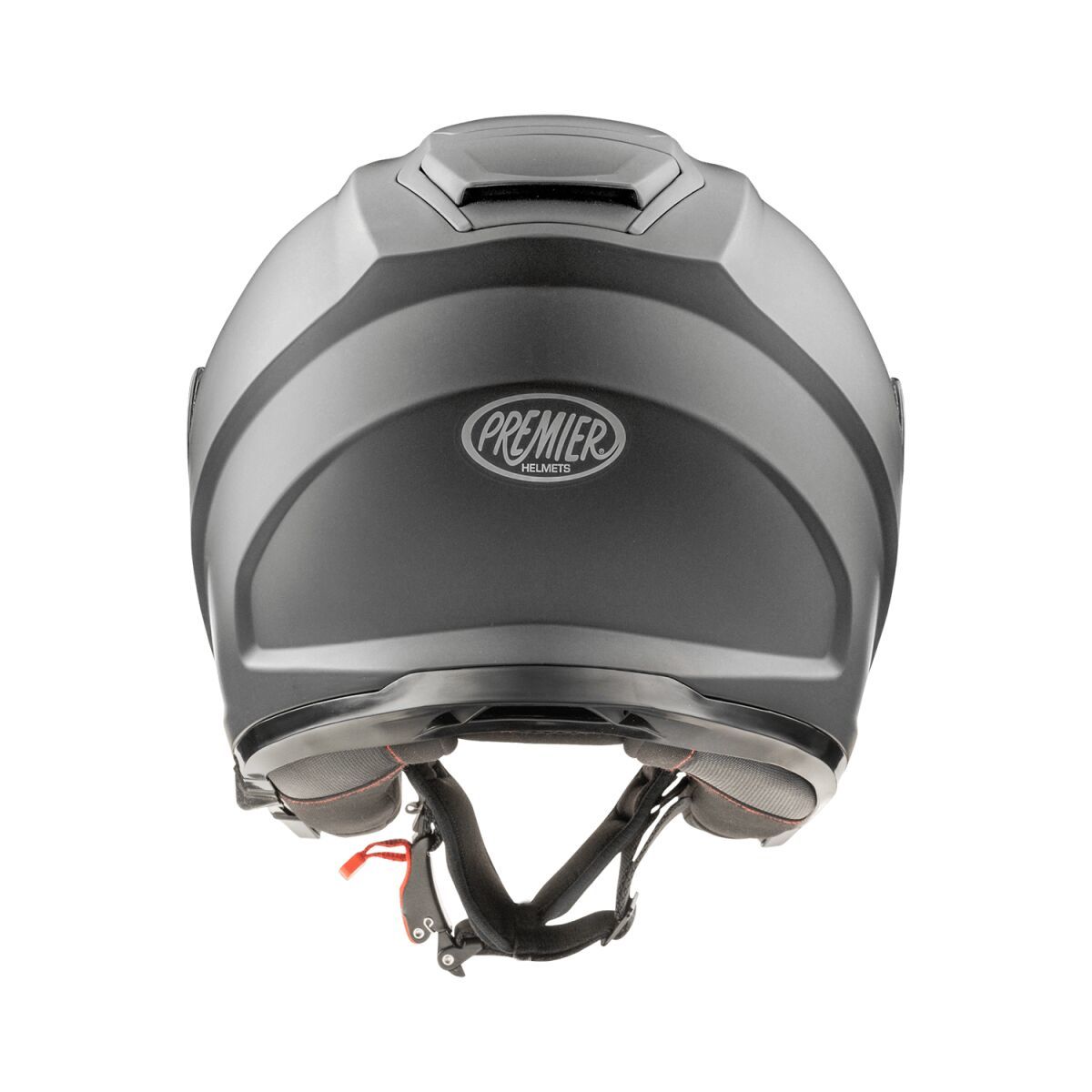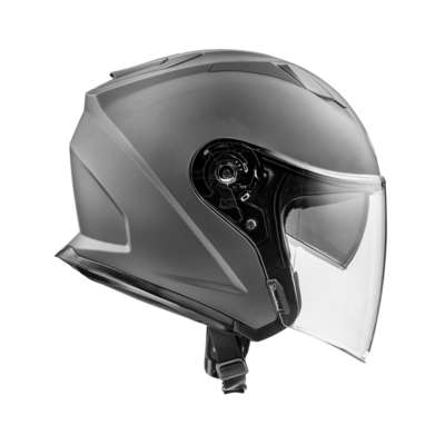 Dokker HelmetOuter shell construction is ABS thermoplastic material which is lightweight and safe in case of impact. Inner shell is made of EPS material with varying densities depending on zone ensuring perfect response to impacts. Main visor is transparent polycarbonate with scratch resistant treatment, designed to cover the whole face for protection from wind and dust. Second interior visor is dark for comfort against strong light, working like sunglasses. Relief present in the lower part, once raised causes the visor to disappear inside the shell. Two air vents in the top and extractor on the back ensure good ventilation. Interior of the helmet is designed to be comfortable, allows for wide view and feeling of freedom of movement. All interior are made hypoallergic by the Sanitized treatment while also being removable and washable. Micrometric safety strap makes the hook and release fast.