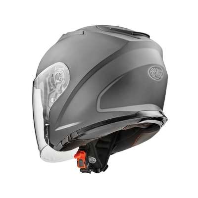Dokker HelmetOuter shell construction is ABS thermoplastic material which is lightweight and safe in case of impact. Inner shell is made of EPS material with varying densities depending on zone ensuring perfect response to impacts. Main visor is transparent polycarbonate with scratch resistant treatment, designed to cover the whole face for protection from wind and dust. Second interior visor is dark for comfort against strong light, working like sunglasses. Relief present in the lower part, once raised causes the visor to disappear inside the shell. Two air vents in the top and extractor on the back ensure good ventilation. Interior of the helmet is designed to be comfortable, allows for wide view and feeling of freedom of movement. All interior are made hypoallergic by the Sanitized treatment while also being removable and washable. Micrometric safety strap makes the hook and release fast.