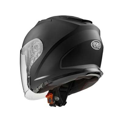 Dokker HelmetOuter shell construction is ABS thermoplastic material which is lightweight and safe in case of impact. Inner shell is made of EPS material with varying densities depending on zone ensuring perfect response to impacts. Main visor is transparent polycarbonate with scratch resistant treatment, designed to cover the whole face for protection from wind and dust. Second interior visor is dark for comfort against strong light, working like sunglasses. Relief present in the lower part, once raised causes the visor to disappear inside the shell. Two air vents in the top and extractor on the back ensure good ventilation. Interior of the helmet is designed to be comfortable, allows for wide view and feeling of freedom of movement. All interior are made hypoallergic by the Sanitized treatment while also being removable and washable. Micrometric safety strap makes the hook and release fast.
