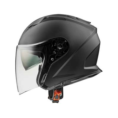 Dokker HelmetOuter shell construction is ABS thermoplastic material which is lightweight and safe in case of impact. Inner shell is made of EPS material with varying densities depending on zone ensuring perfect response to impacts. Main visor is transparent polycarbonate with scratch resistant treatment, designed to cover the whole face for protection from wind and dust. Second interior visor is dark for comfort against strong light, working like sunglasses. Relief present in the lower part, once raised causes the visor to disappear inside the shell. Two air vents in the top and extractor on the back ensure good ventilation. Interior of the helmet is designed to be comfortable, allows for wide view and feeling of freedom of movement. All interior are made hypoallergic by the Sanitized treatment while also being removable and washable. Micrometric safety strap makes the hook and release fast.