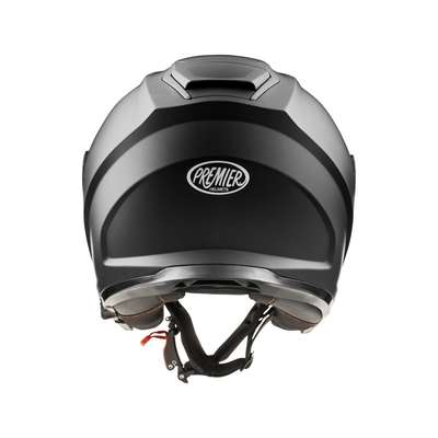 Dokker HelmetOuter shell construction is ABS thermoplastic material which is lightweight and safe in case of impact. Inner shell is made of EPS material with varying densities depending on zone ensuring perfect response to impacts. Main visor is transparent polycarbonate with scratch resistant treatment, designed to cover the whole face for protection from wind and dust. Second interior visor is dark for comfort against strong light, working like sunglasses. Relief present in the lower part, once raised causes the visor to disappear inside the shell. Two air vents in the top and extractor on the back ensure good ventilation. Interior of the helmet is designed to be comfortable, allows for wide view and feeling of freedom of movement. All interior are made hypoallergic by the Sanitized treatment while also being removable and washable. Micrometric safety strap makes the hook and release fast.