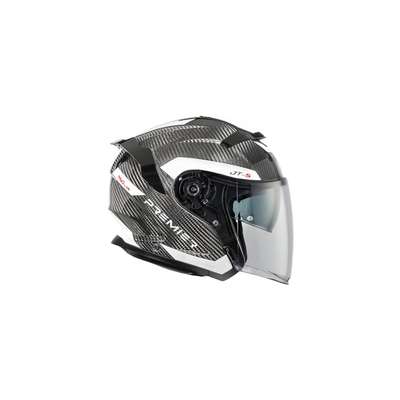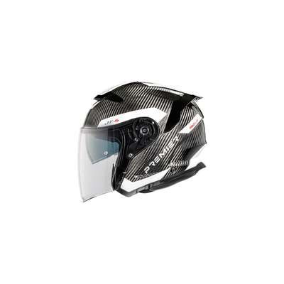 JT5 Carbon MA HelmetOuter shell construction is aramid carbon fiber combined with epoxy resin making the shell light, elastic and resistant to impacts. Inner shell is made of EPS material with variable density on different areas to ensure perfect response to shocks. Outer shell is produced in two mold sizes to perform better depending on the size required. Small shell covers sizes XS to M and larger shell covers L to XXL. Main visor is transparent polycarbonate which is anti-scratch treated, covering the whole face for protection from wind and dust. Inner visor is dark working like sunglasses in case of strong light. It is operated via lever present in the lower part, lowering or raising it inside the shell. Inner visor is also equipped with Pinlock® anti-fog system predisposition on the visor. Two air intakes on top and extractor on back ensure good ventilation. Interior has been designed for comfort, wide view and freedom of movement. All interiors are hypoallergenic by the Sanitized treatment which are removable and washable. Helmet is predisposed to the installation of Bluetooth® communication systems. Micrometric strap closure makes the attachment and release fast.