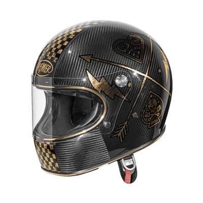 Trophy Carbon HelmetExternal shell construction is moulded with a DCA multi-axial structure composed of carbon and aramid fibres blended with an epoxy resin. Inner shell construction has differentiated density EPS for better absorption of the energy generated by an impact. Combination of inner and external shell construction results in lightweight, durable and comfortable helmet. Anti-scratch treated visor attaches to shell with mechanism that regulates its movement. Internal linings created in Sanitized-treated, antiallergenic fabric with a synthetic leather finish. The strap has a double ring fastener.